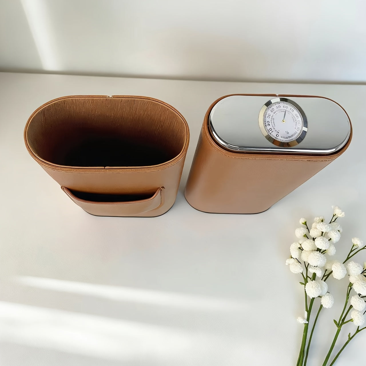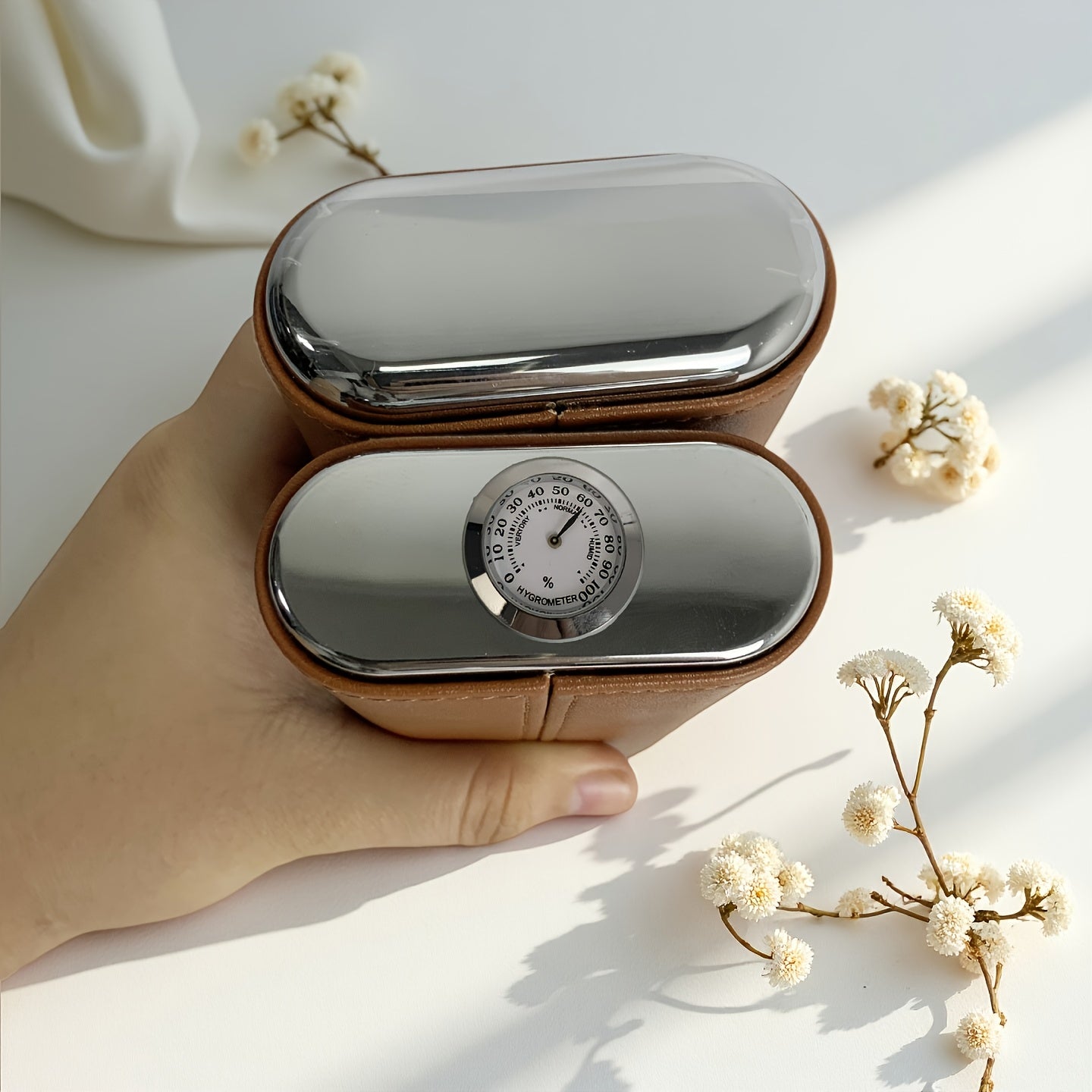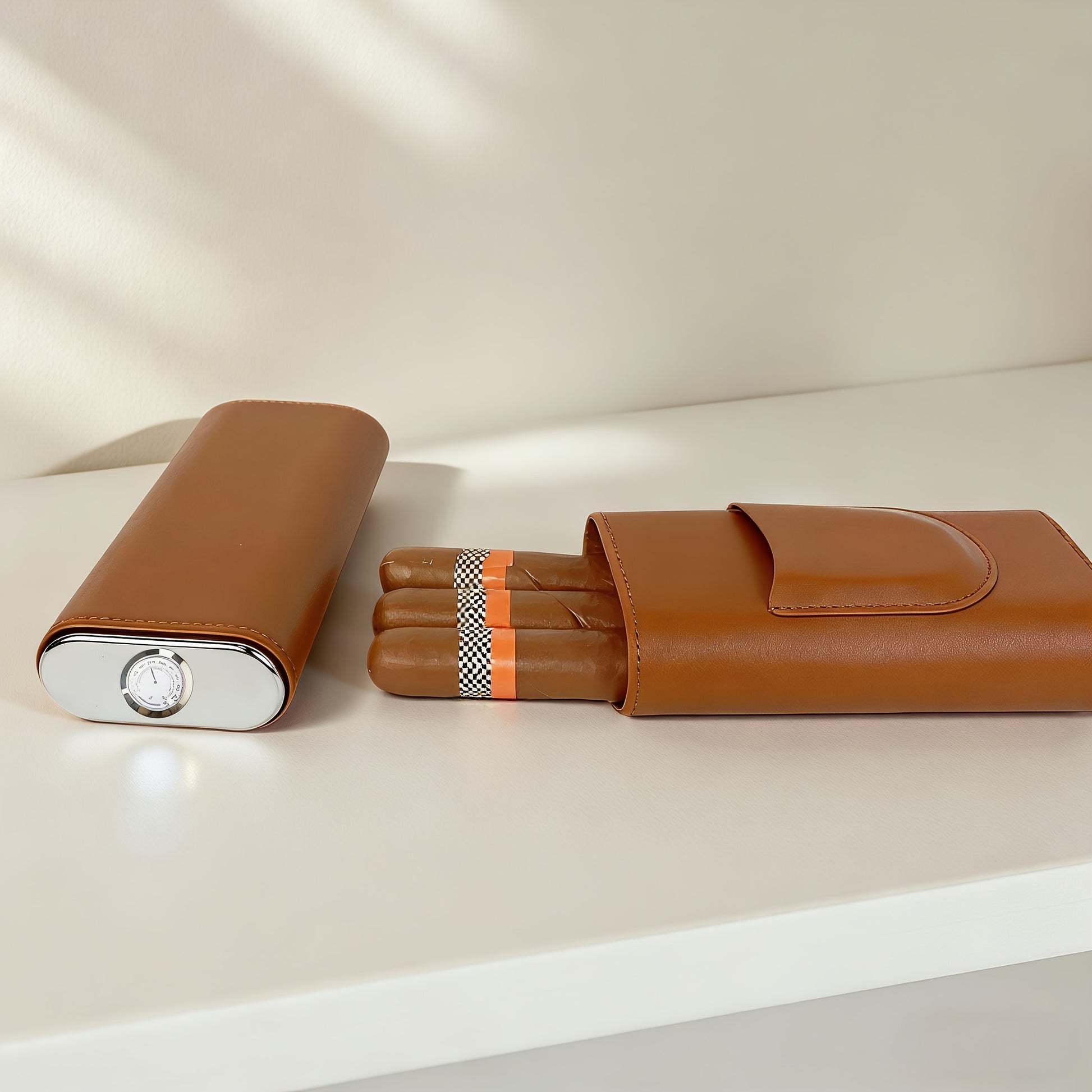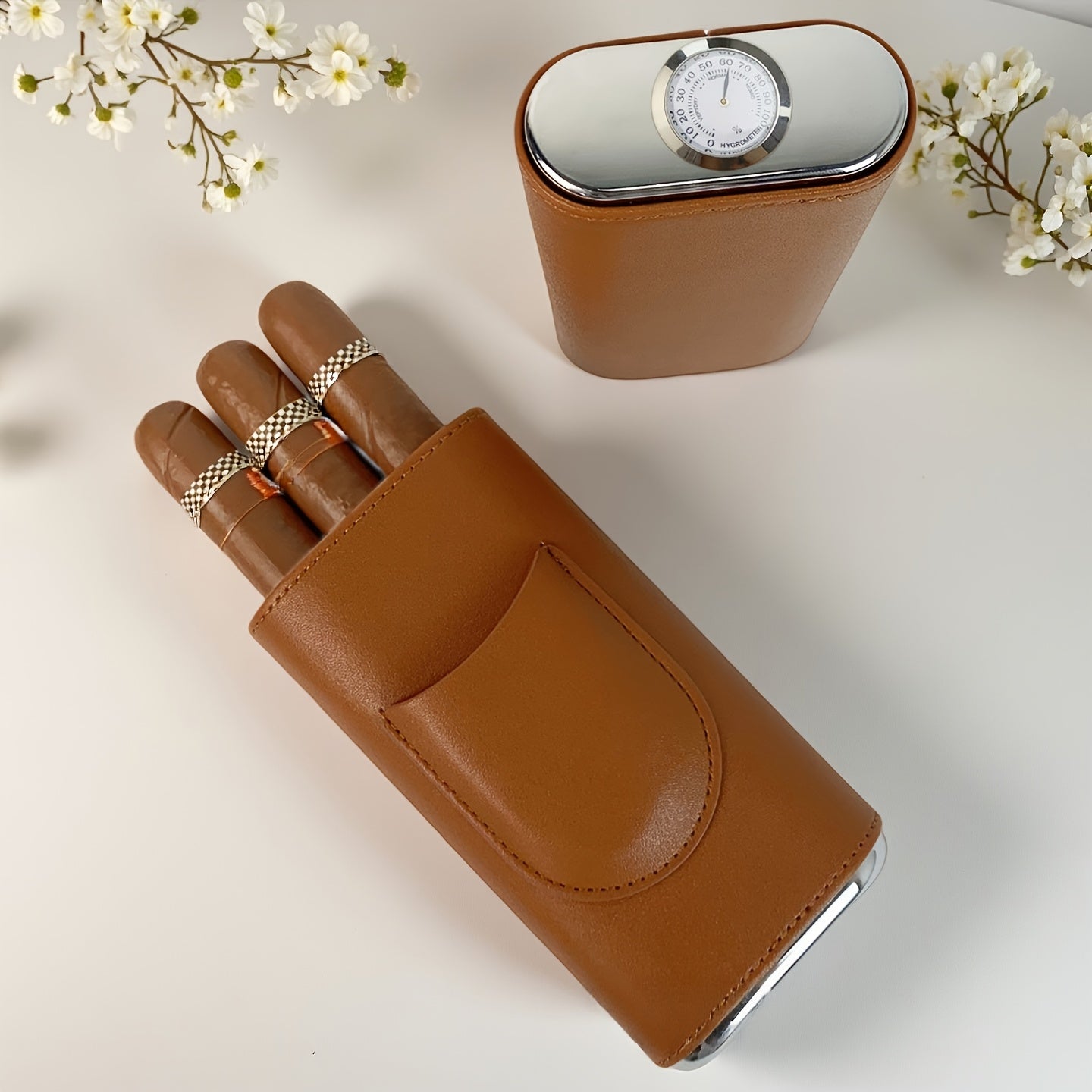3-Cigar Genuine Leather Cigar Box with Top Hygrometer Display, Portable with Hygrometer Dial and Cedar Wood Lining