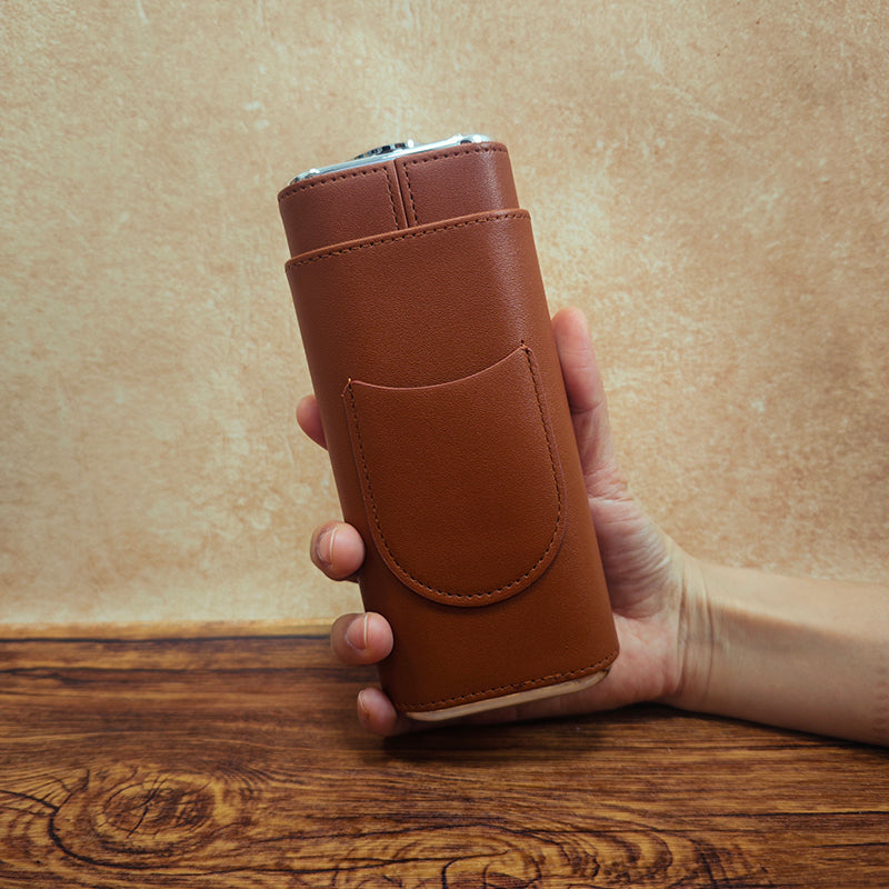 3-Cigar Genuine Leather Cigar Box with Top Hygrometer Display | Travel-Friendly, Portable with Hygrometer Dial and Cedar Wood Lining, Perfect Gift for Husband, Boyfriend, Boss, Father, or Cigar Enthusiast