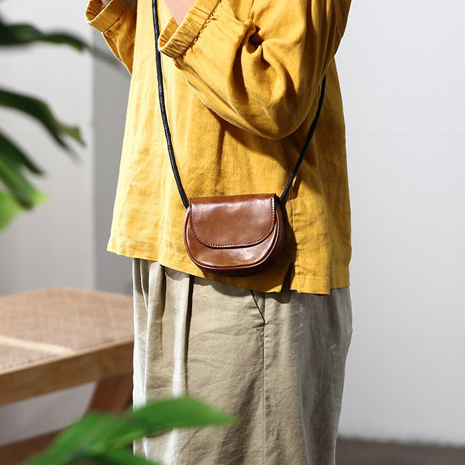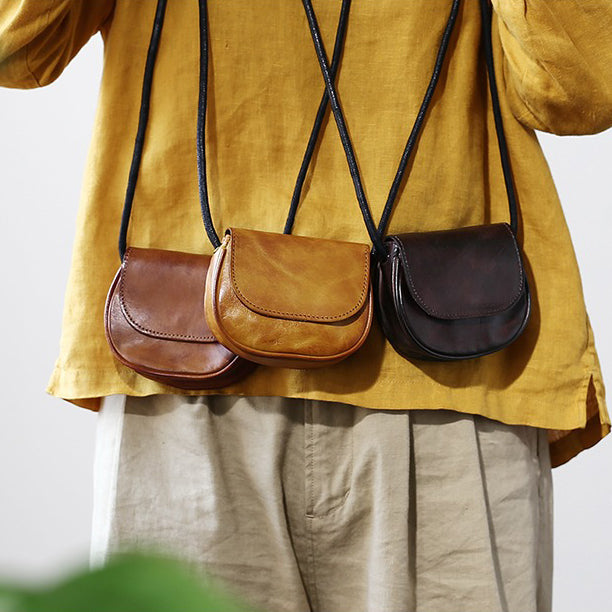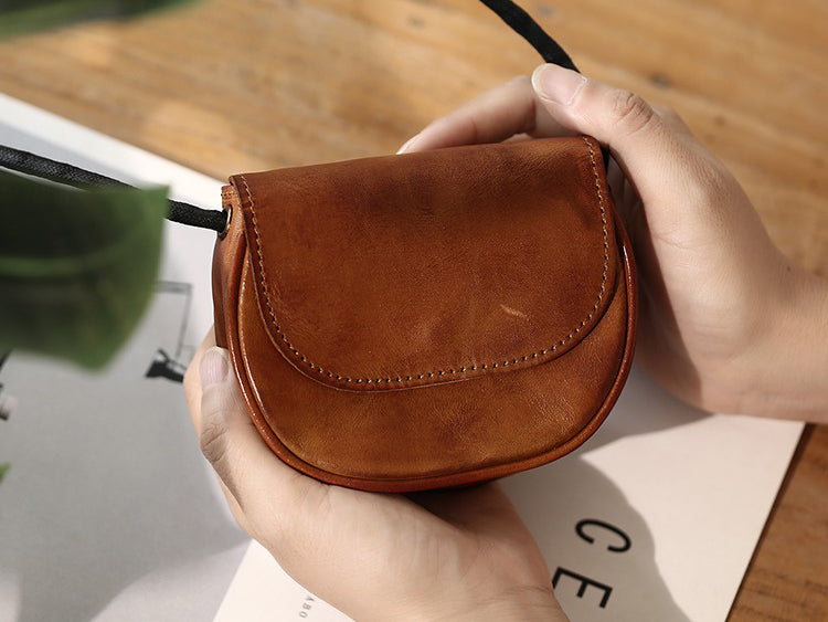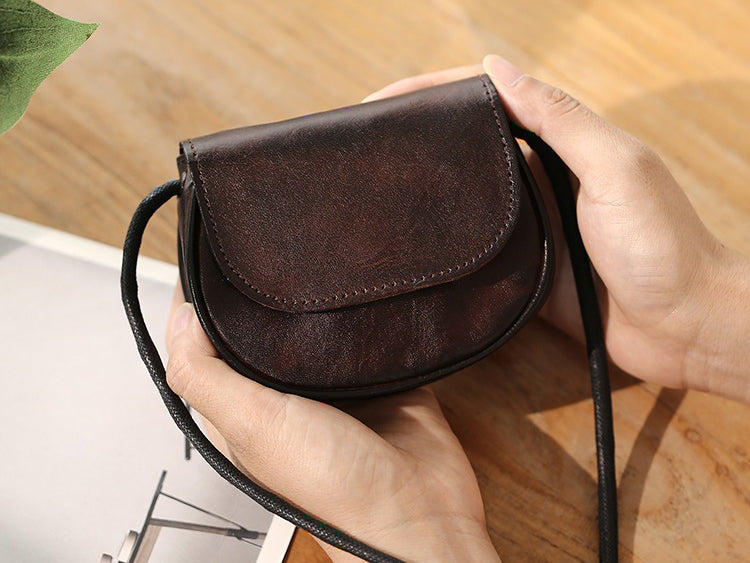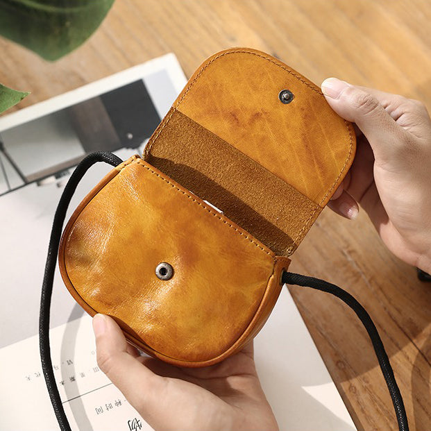 Retro Handmade Leather Card Wallets Mini Crossbody Bags